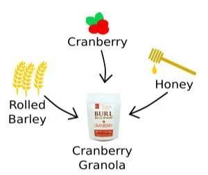 Dried, sweetened cranberries is the starring feature for this flavor, just like the name says. Our goal is to make a granola that has bright and tangy highlights while preserving the classic spiced honey taste of old fashioned granola.